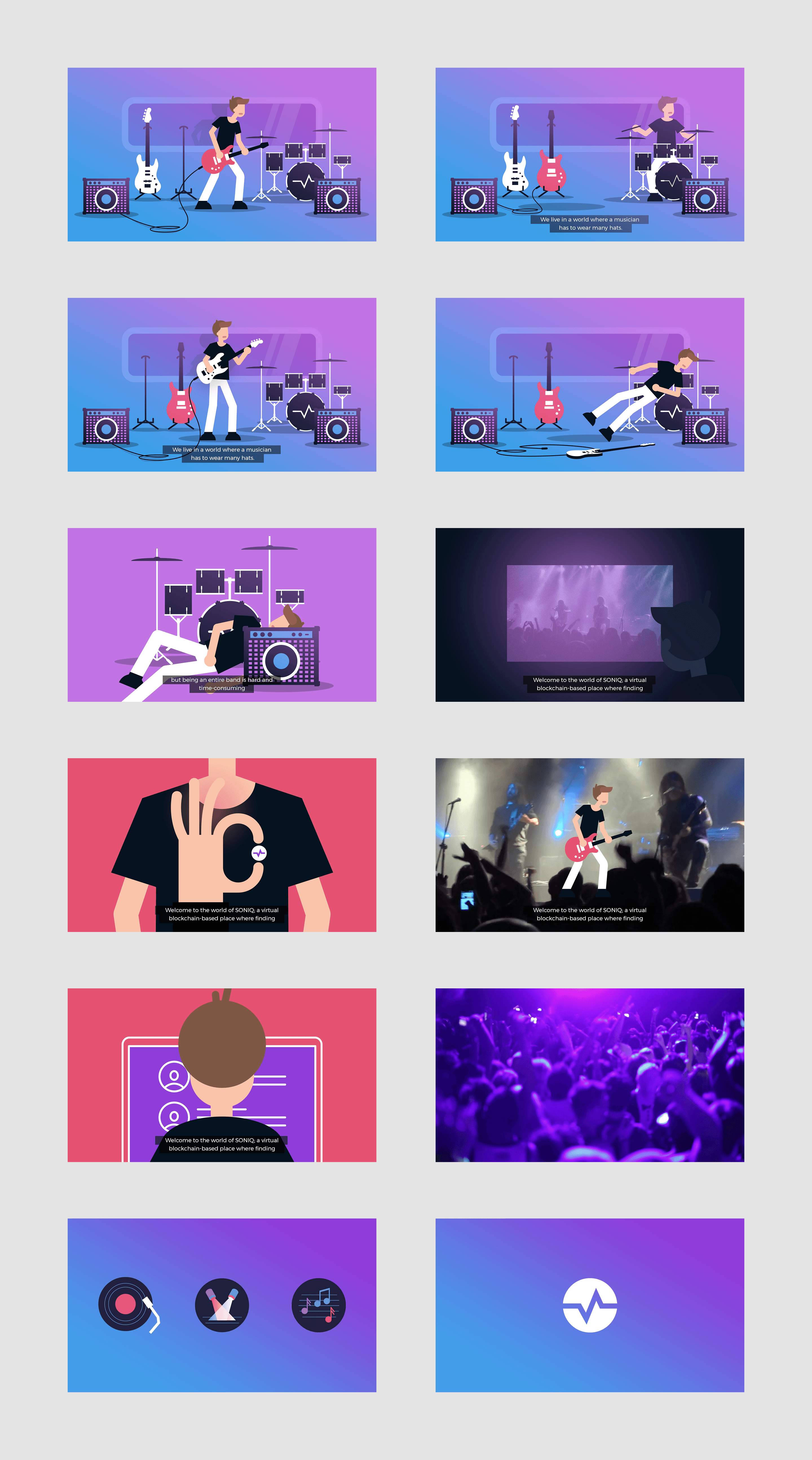 I led storyboarding, illustration, and art direction for the project. My focus was on clear visual storytelling and a bright, approachable aesthetic. The creative direction emphasized playfulness and clarity so viewers could immediately grasp Soniq’s purpose as a music-focused token without getting bogged down in technical detail.